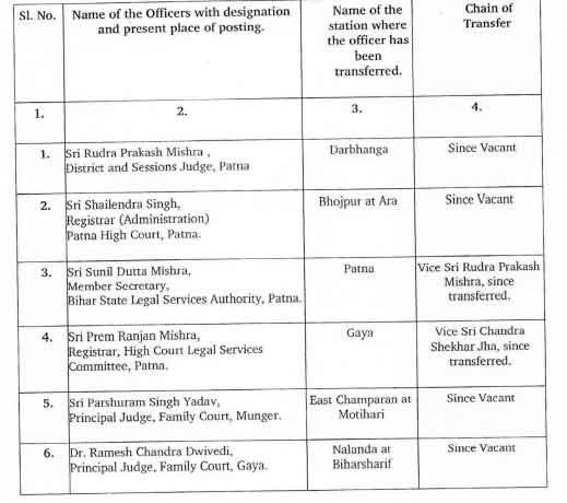 2. रुद्र प्रकाश मिश्रा को दरभंगा का डिस्ट्रिक जज बनाया गया है. इससे पहले वे पटना के जिला जज थे
