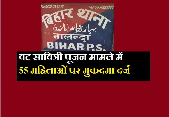 बिहारशरीफ में वट सावित्री पूजा के दौरान सोशल डिस्टेंसिंग के उल्लंघन के मामले में बड़ी कार्रवाई हुई है । बिहार थाना पुलिस ने शहर के 55 महिलाओं के खिलाफ मुकदमा दर्ज किया है ।