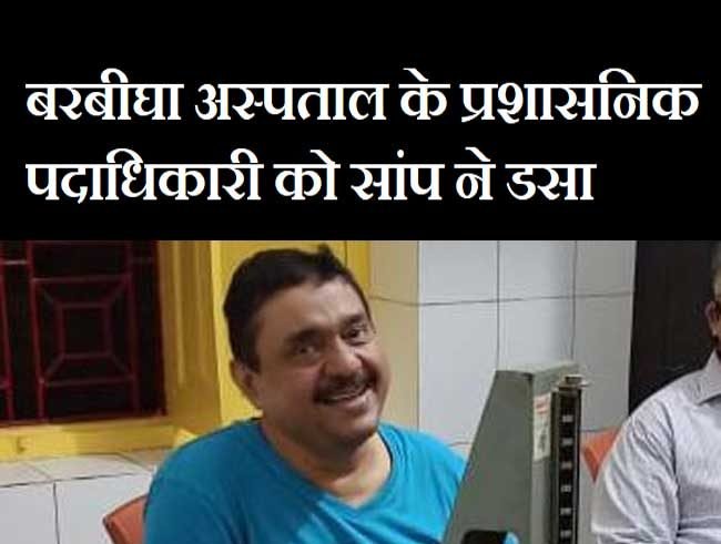 बरबीघा रेफरल अस्पताल के प्रशासनिक पदाधिकारी डॉ.फैसल अरशद को एक सांप ने डंस लिया. जिसके बाद उन्हें इलाज के लिए शेखपुरा के निजी अस्पताल में भर्ती किया गया है।