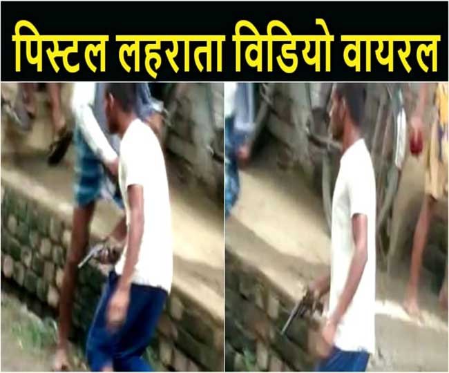 नालंदा जिला के नूरसराय के ककड़िया गांव में एक युवक ने हाथ में पिस्टल लेकर लहराया था. जिसका वीडियो रविवार को तेजी से वायरल हो गया. बताया जा रहा है कि भूमि विवाद में युवक ने दबंगई साबित करने के लिए हथियार लहराया था.