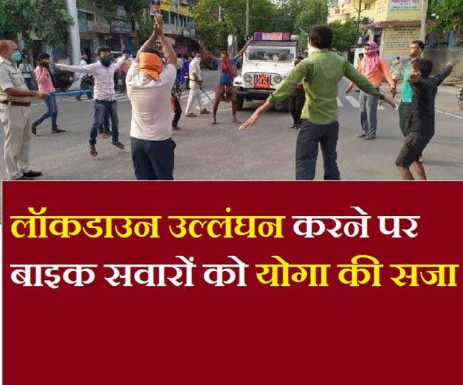 जैसे जैसे लॉकडाउन बढ़ता जा रहा है वैसे वैसे लॉकडाउन उल्लंघन उल्लंघन के मामले भी बढ़ते जा रहे हैं. नालंदा जिला में लॉकडाउन उल्लंघन करने पर बाइक सवारों को योगा की सजा दी गई.