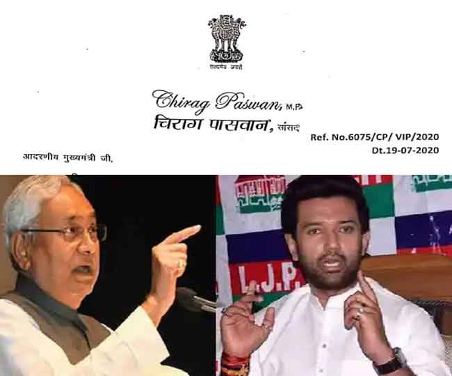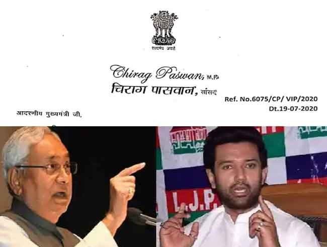 चिराग पासवान ने एक बार फिर सीएम नीतीश कुमार पर बड़ा हमला बोला है. इस बार चिट्ठी के जरिए सूबे की स्वास्थ्य व्यवस्था पर सवाल उठाया है. जिसमें पूछा है कि आखिर कोरोना पॉजिटिव मरीज रंजीत कहां गया और सीएम नीतीश कुमार से उसे ढूंढने की मांग की है.