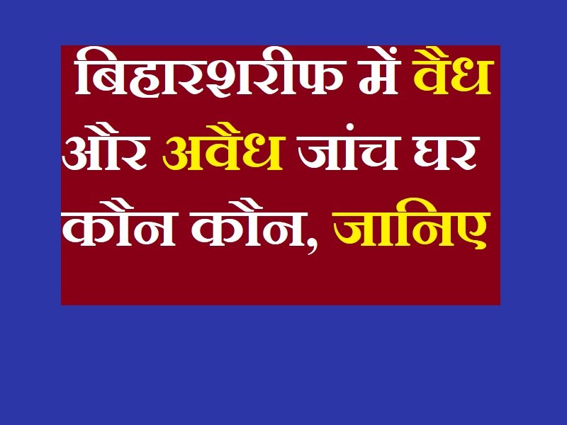 बिहारशरीफ में कई जांच घर फर्जी तरीके से चलाए जा रहे हैं । जिससे मरीजों की जिंदगी खतरे में पड़ जाती है । कई बार तो जांच घर गलत रिपोर्ट भी दे देते हैं ।बिहार सरकार ने सभी फर्जी पैथोलॉजी सेंटर को बंद करने का आदेश दिया है । स्वास्थ्य विभाग के मुताबिक बिहारशरीफ शहर में निम्मलिखित जांचघर अवैध हैं