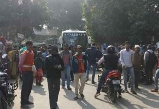 टूरिस्ट बस ने बाइक सवार को कुचला, दोनों बाइक सवार की हालत गंभीर