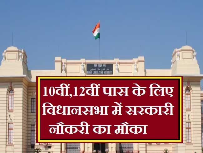 अगर आप 10वीं यानि मैट्रिक और 12वीं यानि इंटर पास हैं तो आपके लिए अच्छी ख़बर है । आपको सरकारी नौकरी का मौका मिल रहा है । वो भी बिहार विधानसभा में । जहां मुख्यमंत्री से लेकर सभी मंत्री, विधायक बैठते हैं। राज्य के लिए नियम और कानून बनाते हैं । वहां आपको सरकारी नौकरी करने का मौका मिल सकता है । इसके लिए बिहार विधानसभा (Bihar Vidhansabha) की ओर से बड़े पैमाने पर वैकेंसी निकली है ।