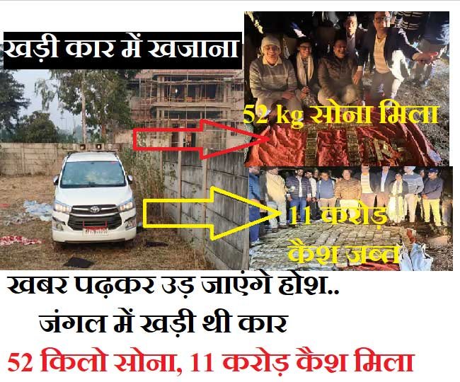 अगर आप जंगल में जा रहे हैं। बीच जंगल में आपको एक कार खड़ी दिखाई दे। उसके दोनों गेट खुले हों। कार में कोई शख्स ना हो। तो आप क्या करेंगे। जाहिर सी बात है डर जाएंगे। लेकिन इस खबर को पढ़ने के बाद आप डरेंगे नहीं बल्कि आप मालामाल बन सकते हैं ।क्योंकि एक लावारिश खड़ी इनोवा कार से इनकम विभाग की टीम को 52 किलो सोना और 11 करोड़ रुपए कैश मिले हैं। चौंक गए ना आप। ये कोई मजाक नहीं है । बल्कि ये 100 फीसदी सच ख़बर है । ऐसा ही हुआ है । जंगल में खड़ी इनोवा कार से इनकम विभाग की टीम को 52 किलो सोना और 11 करोड़ कैश बरामद हुआ है।