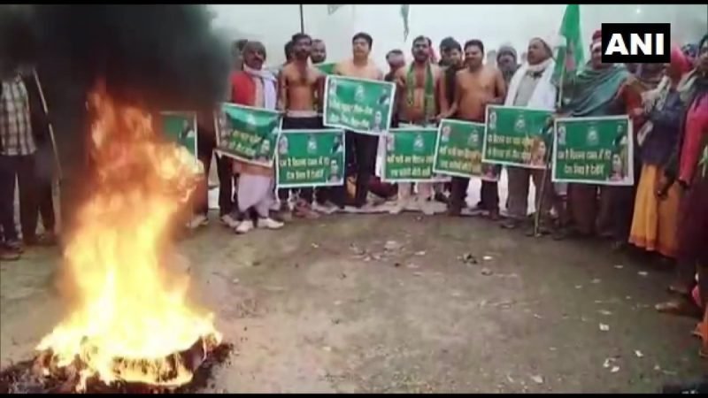 Bihar: RJD (Rashtriya Janata Dal) workers hold protest in Darbhanga. RJD has called a bandh in Bihar today against the #CitizenshipAmendmentAct. pic.twitter.com/sQIKBoRQuD