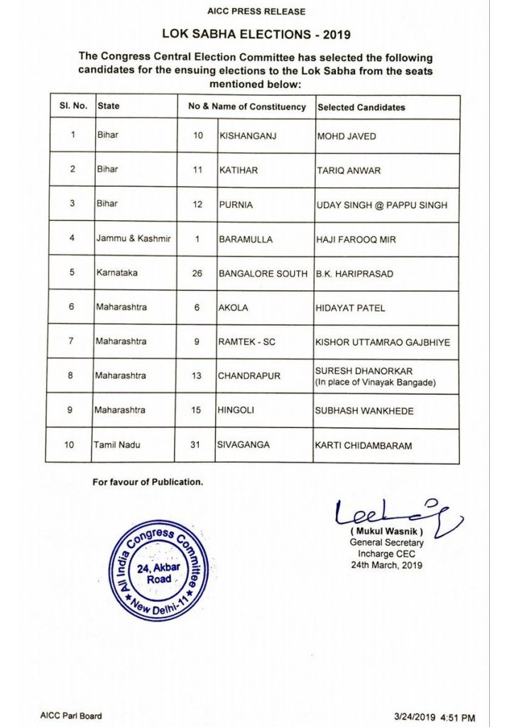 बिहार में कांग्रेस ने तीन सीटों के लिए अपने उम्मीदवारों के नाम का एलान कर दिया है । कांग्रेस ने कटिहार सीट से अपने मौजूदा सांसद तारिक अनवर को मैदान में उतारा है। जबकि पूर्णियां सीट पर उदय सिंह उर्फ पप्पू सिंह को मैदान में उतारा है। इसके अलावा किशनगंज सीट से मोहम्मद जावेद को टिकट दिया है । यहां आपको बता दें कि कटिहार सीट पर एनडीए की ओर से जेडीयू ने दुलार चंद गोस्वामी को मैदान में उतारा है। वहीं पूर्णिया सीट पर भी एनडीए की ओर से जेडीयू ने संतोष कुशवाहा को टिकट दिया है। इसके अलावा किशनगंज सीट पर भी जेडीयू ने ही उम्मीदवार उठाया है । जेडीयू ने किशनगंज से महमूद अशरफ़ को टिकट दिया है।