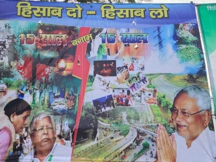 पोस्टर में राजद के 15 साल और जदयू के 15 साल की तुलना की गई है। पोस्टर के माध्यम से जदयू ने राजद से उनके शासन काल के 15 साल के काम का हिसाब मांगा है साथ ही यह बताया है कि जदयू के सत्ता में रहने के दौरान 15 साल में कितने काम हुए।
