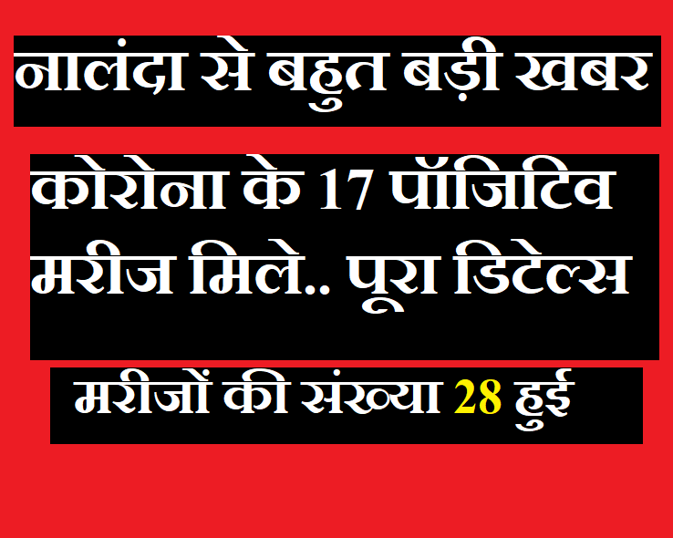 इस वक्त एक बड़ी खबर नालंदा जिला से आ रही है. जहां कोरोना के 17 नए मरीज मिले हैं. इसके साथ ही कोरोना मरीजों की संख्या बढ़कर 28 हो गई है.