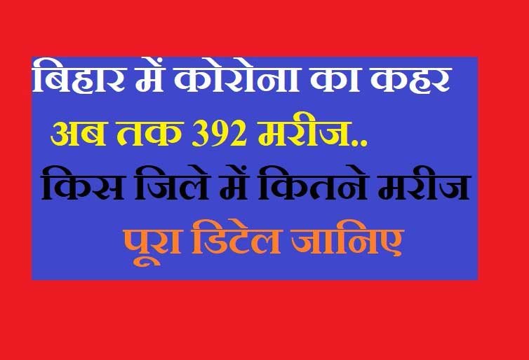 बिहार में कोरोना संक्रमण तेजी से फैलता जा रहा है । बुधवार को कोरोना के 26 और मरीज मिले हैं. जिसके बाद सूबे में कोरोना पॉजिटिव मरीजों की संख्या बढ़कर 392 हो गई है।