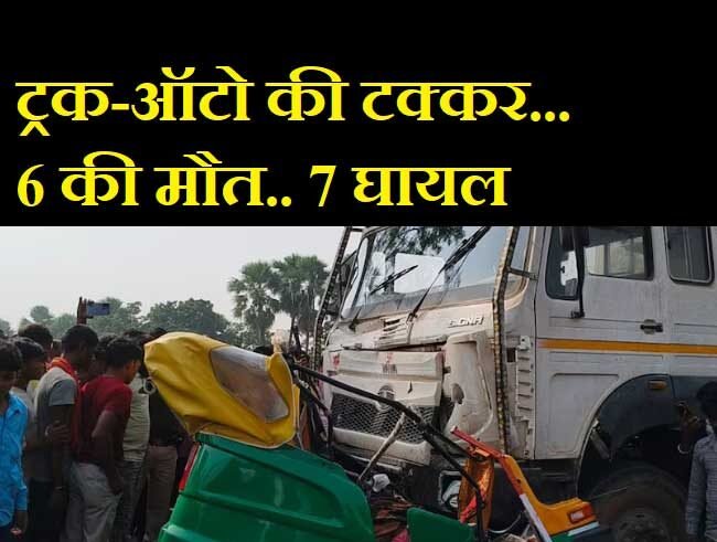 एक बार फिर तेज रफ्तार का कहर देखने को मिला है.. जब तेज रफ्तार ट्रक और ऑटो के बीच आमने-सामने टक्कर हुई.. जिसमें 6 लोगों की मौत हो गई .. जबकि 7 लोग गंभीर रुप से घायल हैं.. घायलों को इलाज के लिए पावापुरी मेडिकल कॉलेज में भर्ती कराया गया है..